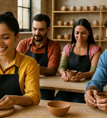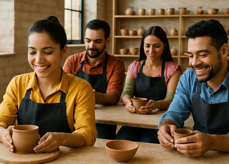 Los participantes trabajan con arcilla para crear figuras de barro que representen ideas, valores o símbolos compartidos