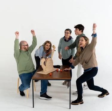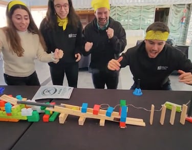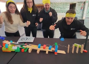 En esta actividad los equipos deberán diseñar y construir juntos una reacción secuenciada en efecto domino utilizando diversos materiales.