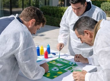 Como equipo tendrán la misión de crear un mural colectivo sin saber cuál es la Obra de Arte final, solamente utilizando un bosquejo a escal